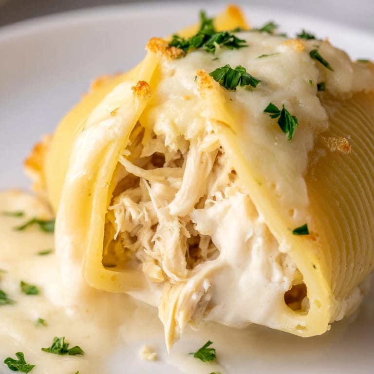 Save The kitchen smelled like garlic and melted butter, and I was trying to impress my in-laws on their first visit. I'd never stuffed a pasta shell in my life, but something about the idea of creamy chicken Alfredo tucked inside those giant shells felt both fancy and forgiving. My husband stood by the stove, taste-testing the sauce with a wooden spoon, nodding his approval. By the time the dish came out of the oven, golden and bubbling, I knew I'd found a recipe I'd lean on again and again. It's been my secret weapon ever since.