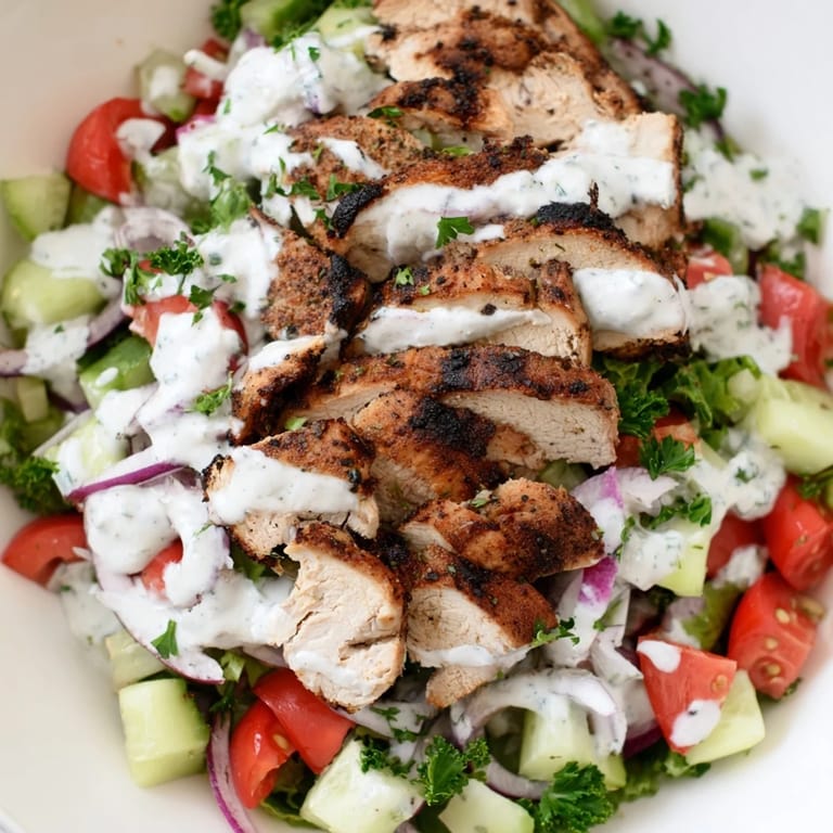 Save My kitchen was a mess of spice jars when I first tried to recreate the shawarma chicken I'd eaten at a street cart in Toronto. The vendor had smiled when I asked what made it so good, tapping his nose like it was a secret. I came home determined to crack the code, dumping nearly every warm spice I owned into a bowl. The result was chaotic but surprisingly delicious, and that's how this salad was born, part accident, part obsession.