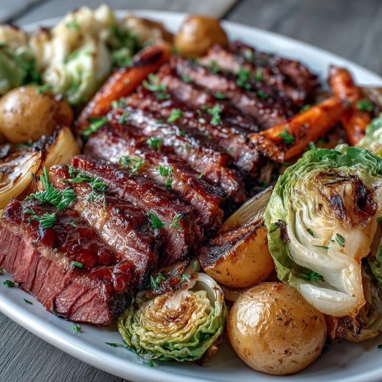 Save My cousin Sarah called me on a Tuesday asking if I could throw together something Irish for St. Patrick's Day dinner, but she needed it done in under an hour. I'd made corned beef and cabbage the traditional way before—you know, the boiling pot situation that fills your whole kitchen with steam—and it always felt like a production. That's when it hit me: what if I roasted everything on one pan instead? The result was so good that now whenever someone asks for comfort food on a weeknight, this is what I make.