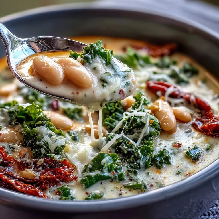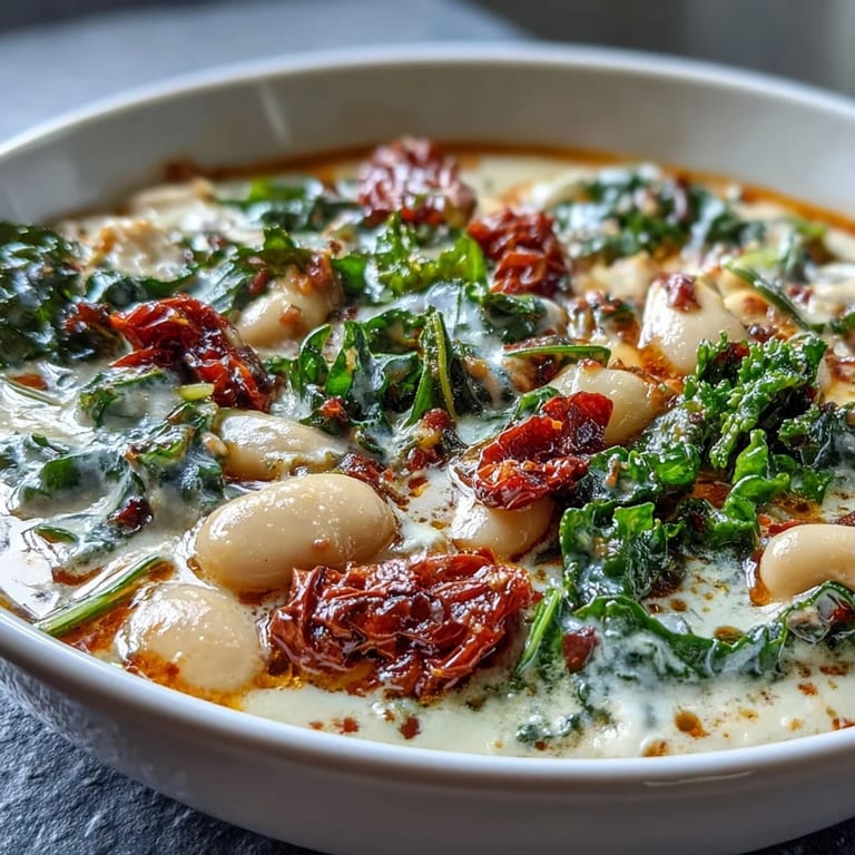 Save There's something about the way garlic hits hot oil that makes you feel like you're cooking something important, even if it's just soup. I stumbled onto this Tuscan white bean and kale creation on a gray Tuesday afternoon when my kitchen felt too quiet and my fridge had that magical combination of things that shouldn't work together but absolutely do. The cashew cream was an accident, honestly—I'd soaked cashews for something else and decided to blend them into silky submission, and suddenly I had the secret ingredient that transforms a simple vegetable broth into something that tastes like you've been tending a Tuscan garden all morning.