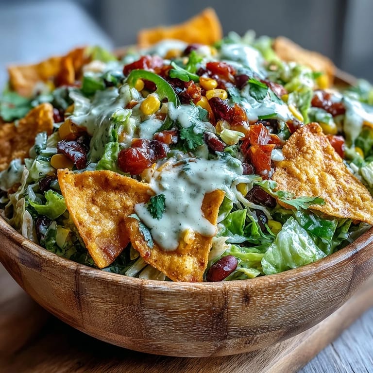 I made this for my daughter's soccer team's end-of-season dinner, and watching the kids actually get excited about salad was surreal. One parent pulled me aside and asked if I'd made everything from scratch, and when I admitted the Fritos were the secret weapon, she laughed so hard she nearly spilled her plate. It became the thing everyone remembered—not the grilled meat or the fancy dessert, but the salad with the chips in it. That's when I stopped overthinking recipes and started trusting that food is about joy first.