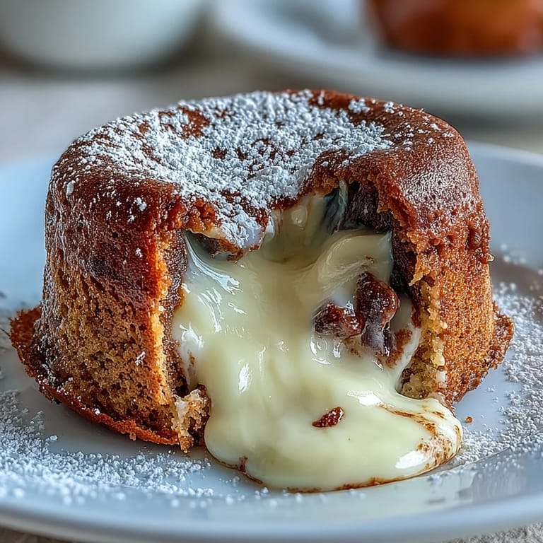 Save Indulge in a sophisticated dessert that brings the comforting flavors of a Japanese tea house right to your table. This Hojicha White Chocolate Lava Cake is a decadent individual treat featuring a molten center of creamy white chocolate perfectly infused with the nutty, roasted aroma of hojicha tea. Each cake is a delicate balance of sweetness and earthiness, designed to impress at your next dinner party or provide a moment of pure indulgence during a quiet evening.