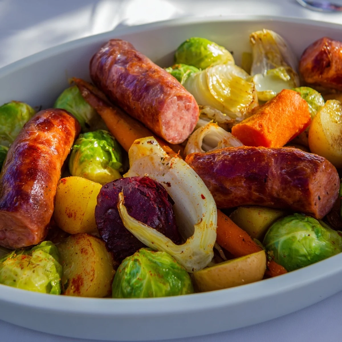 - Smoked sausages: The smoky, salty base of the whole dish. I like using thick-cut Polish kielbasa, but any good-quality smoked sausage works. Cut them into chunks so they release their fat and flavor into the vegetables.