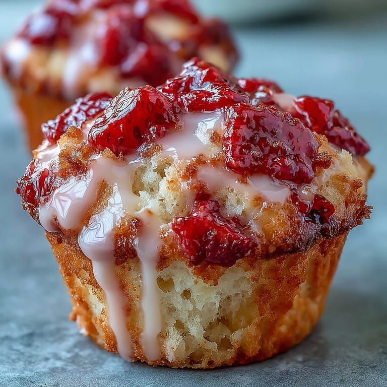 When my cousin dropped by with her toddler one rainy afternoon, I decided to bake these muffins to distract little sticky hands from mischief. We watched together as the batter swirled, strawberries poking through like colorful gems. The kitchen filled with a warm, tangy scent, and everyone—including the dog—lingered near the oven, eager for the first taste. Their excitement became tangled with genuine laughter when glaze dripped everywhere during decorating. There was no hope for perfectly tidy muffins—just good memories.