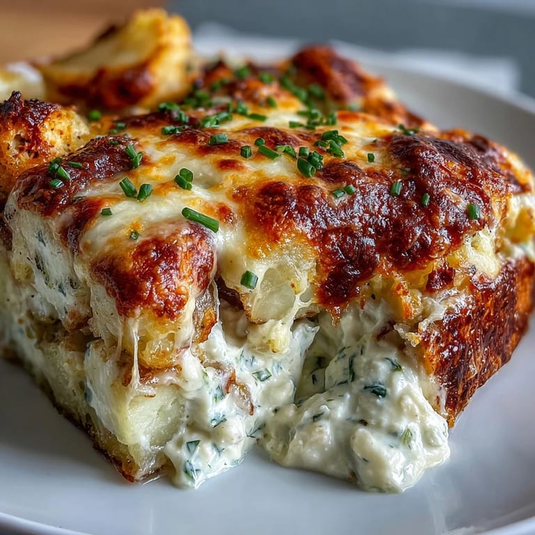 - Let it sit for ten minutes before garnishing with fresh chives or parsley—this pause lets everything set slightly so servings stay together instead of sliding into a puddle of sauce.