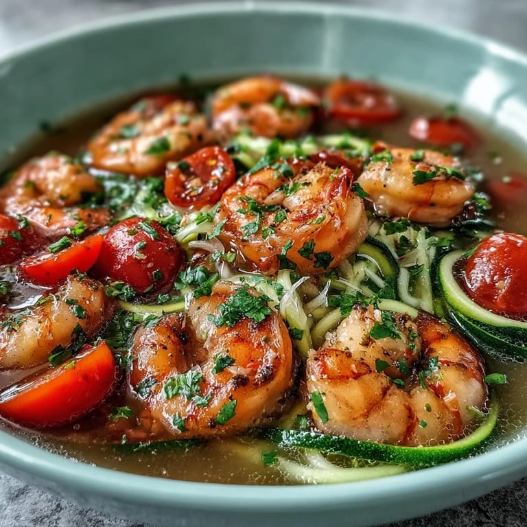 There's something about serving something in a bowl with broth that makes it feel restaurant-worthy, even though you've spent less time cooking than you would waiting for takeout. The lemon-garlic combination is a classic that never fails, and because everything is visible in the bowl—the pink shrimp, the curled zucchini, the burst tomatoes—it photographs like you've been practicing your plating. This is the recipe I make when I want to feel competent in the kitchen without actually stressing.